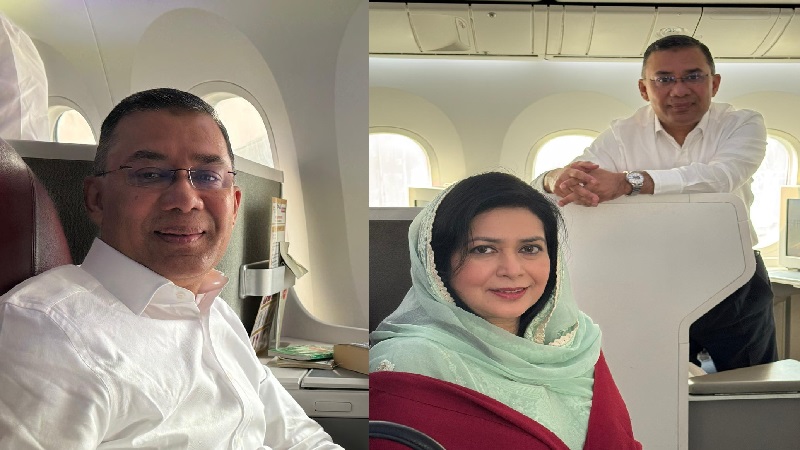 এর আগে ঢাকার শাহজালাল আন্তর্জাতিক বিমানবন্দর কর্তৃপক্ষ ও বিমান বাংলাদেশ এয়ারলাইন্সের অভ্যন্তরীণ নির্ভরযোগ্য সূত্রে জানা যায়, বিমান বাংলাদেশ এয়ারলাইন্সের নিয়মিত বাণিজ্যিক ফ্লাইট BG 202-এ (Boeing 787-9 Dreamliner) চড়ে তারেক রহমান ও তার পরিবারের সদস্যরা দেশে ফিরছেন। বিশ্বের সবচেয়ে জনপ্রিয় ফ্লাইট ট্র্যাকিং ওয়েবসাইট Flightradar24.com জানাচ্ছে, সে বিমানটি ইতোমধ্যেই দেশের আকাশে ঢুকে পড়েছে। দেশের আকাশে ঢোকার পর তারেক রহমান একটি ফেসবুক পোস্ট করেছেন। সেখানেই লিখেছেন, ‘দীর্ঘ ৬ হাজার ৩শ ১৪ দিন পর বাংলাদেশের আকাশে।’